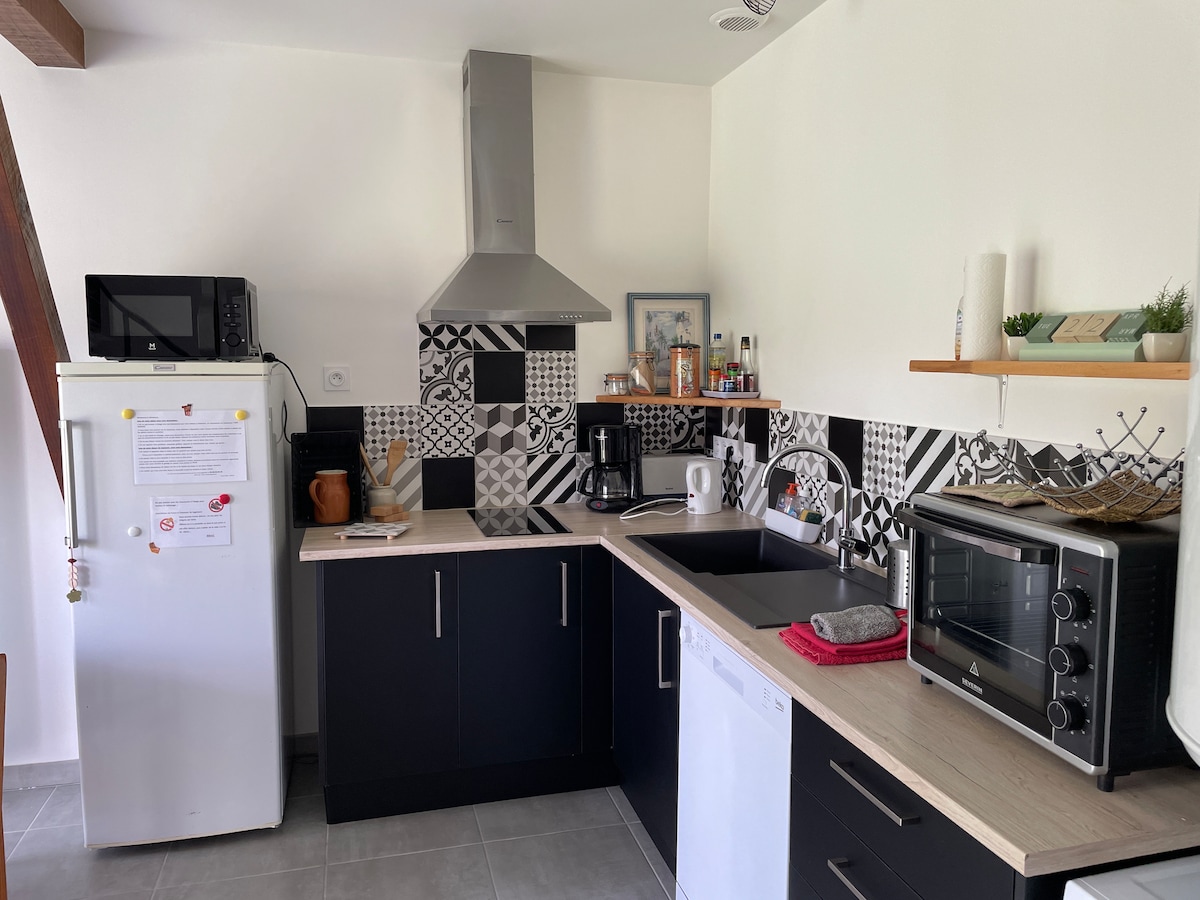 Logement pour 4 personnes MAX, 2 chambres, (3 lits), 2sdb, 2WC, cuisine équipée, situé dans un agréable village. A noter : -Logement mitoyen avec une autre location saisonnière -Terrain non clôturé -Escalier non à adapté enfants bas âge -Possibilité de se garer devant le logement. —>Arrivée à partir 18h en semaine, horaires flexibles le WE. Les lits sont faits à votre arrivée. ** LINGE DE TOILETTE NON FOURNI** Le ménage est à faire à la fin du séjour.