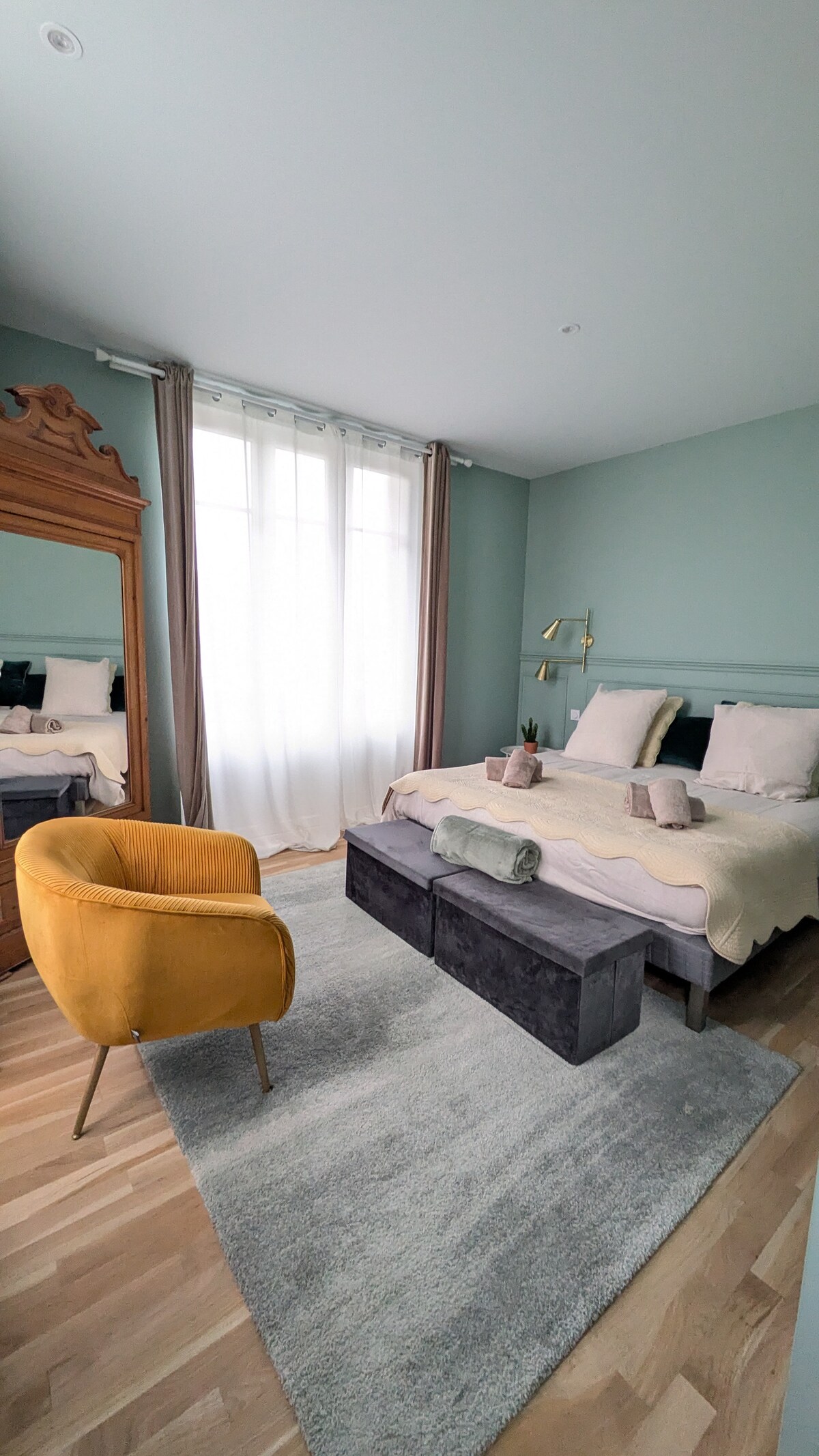 Muy bonito apartamento de unos 50 m2 totalmente renovado y decorado con cuidado para que nuestros huéspedes pasen una estancia agradable en esta magnífica mansión normanda ubicada en Villers sur mer Será recibido por Hervé, que sabrá instalarse perfectamente y aconsejarle sobre sus diferentes salidas Limpieza obligatoria 40 euros Opción de ropa de cama 20 euros/cama (que incluye ropa de cama, ropa de baño ) También se puede disfrutar del hermoso parque de la residencia para descansar
