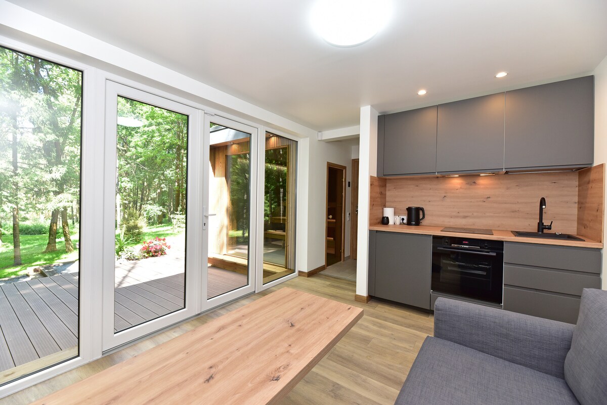 If you are looking for a place to escape the hectic city life for a weekend or longer, we welcome you to our tiny sauna house - a cosy newly built place in a beautiful surroundings of nature just 14 km from Vilnius city centre! This place has relaxing view of lake and nature that are beautiful whole year around. On the ground floor of the house there is a lounge, mini kitchen, bathroom, sauna and in the attic - bedroom. Use (one time heating max 2h) of private sauna extra 45EUR paid on arrival.