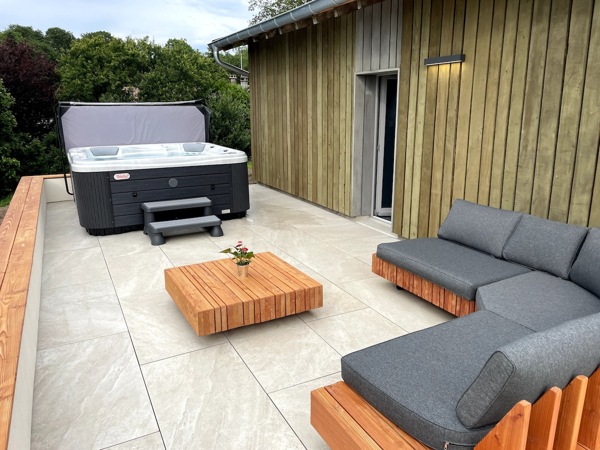La cabaña des Hauts Jardins: cabaña, spa y red