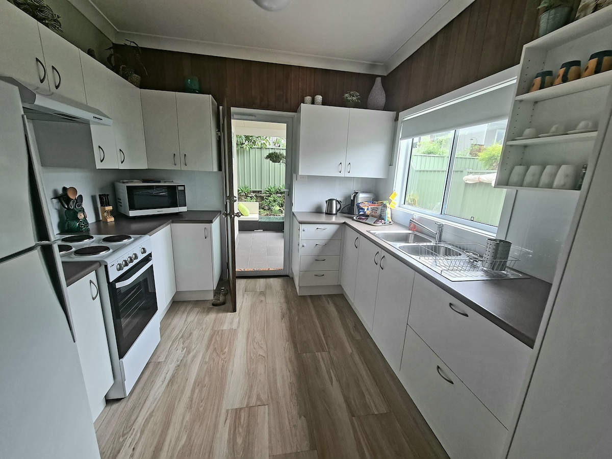 Ted's Cottage se encuentra en Vincentia, a menos de 220 metros de las aguas vírgenes de la bahía de Jervis y a 15 minutos en auto de la mundialmente famosa Hyams Beach. Te enviaremos el código de seguridad de la llave temprano el día de tu llegada. Se incluye wifi y ropa de cama gratis, excepto toallas de playa. Teds es acogedor y está bien equipado con todas tus necesidades básicas, como té, café, azúcar, sal, pimienta, detergente en polvo, champú, condición y gel de baño. El salón se despliega en una cama doble. Ropa de cama adicional en la prensa de ropa de cama del vestíbulo.