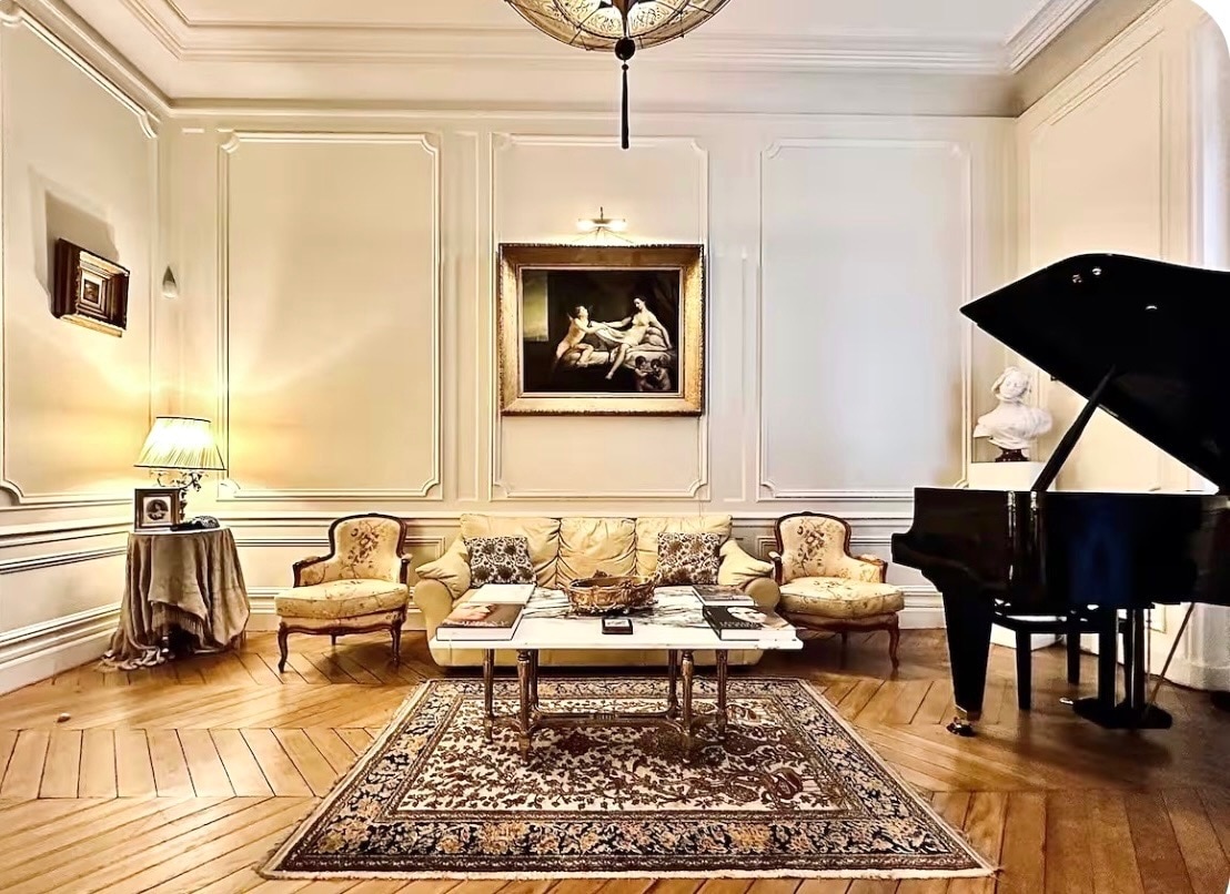 Boasting herringbone parquet flooring, fine furnishings and abundant natural light, this sophisticated 110m2 apartment offers a bright, elegant, warm and luxurious atmosphere. The apartment, with fireplace and moldings, combining charm, calm and comfort is located in one of the oldest passages in the historic center of Paris. This apartment has an official tourist accommodation operating license. So it's perfectly legal.