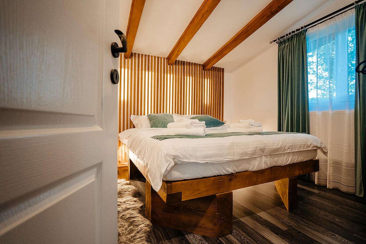 Bienvenido a Montis House, una acogedora y acogedora casa de campo en el corazón de Maramures, en Vișeu de Sus. El lugar perfecto para parejas, pero también para familias pequeñas o amigos cercanos que quieren disfrutar de paz, naturaleza y auténtica comodidad. La cabaña tiene una acogedora zona para dormir arriba, con dos cómodos colchones, una acogedora sala de estar para noches acogedoras y una cocina totalmente equipada. El patio y el patio proporcionan espacio para relajarse y asar.