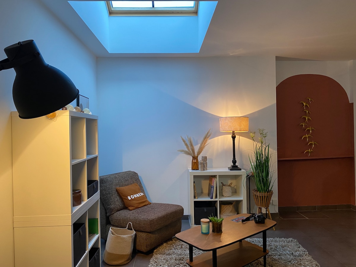 Apartamento acogedor, agradable: una decoración y un ambiente acogedor en el corazón del centro de la ciudad de Vitré, a 2 pasos del castillo, cerca de la estación de tren y las tiendas. Ya sea por trabajo o para hacer turismo, ¿nuestro principal objetivo? Que se sienta como en casa en nuestro alojamiento completamente nuevo. Pequeña aclaración: Para que todo salga bien, los intercambios, la información y las instrucciones se realizan solo a través de la mensajería de Airbnb. Mi teléfono está reservado para emergencias relacionadas con la estancia.