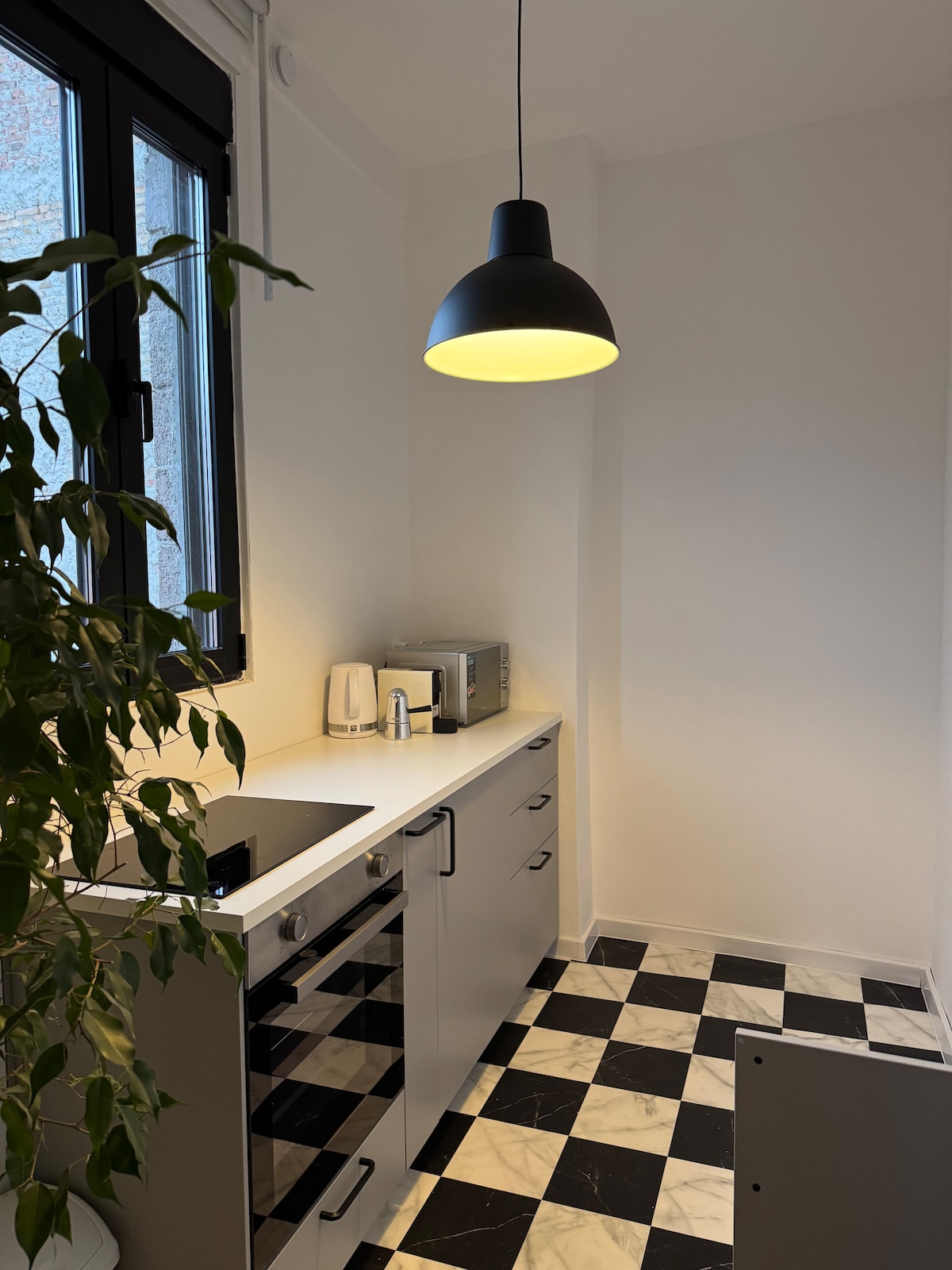 Bienvenido al nuevo y soleado estudio loft con balcón en el centro de la ciudad de Belgrado. Inspirado en principios de diseño minimalistas e innovadores, este espacio presenta una mezcla excepcional de espacio abierto, líneas limpias y materiales meticulosamente elegidos, principalmente de notables marcas yugoslavas y escandinavas. Con su abundante luz natural, refrescantes acentos verdes y diseño eficiente, este estudio compacto pero espacioso ofrece un refugio ideal para estancias cortas en la ciudad.