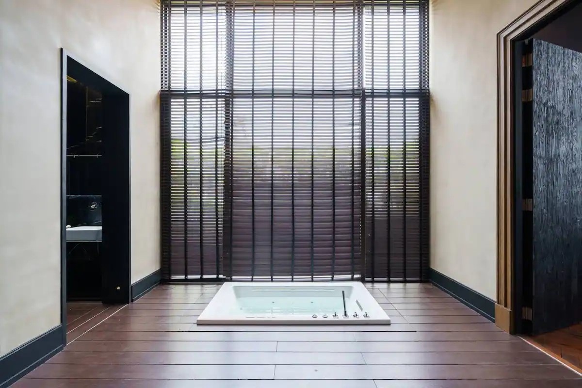Esta hermosa unidad de 55 metros cuadrados de inspiración japonesa cuenta con todo lo que necesitas para una estancia agradable. El dormitorio tiene una cama tamaño king y un espacio de trabajo personal, y se abre a un espacioso baño semi exterior con una bañera de madera ofuro que se adapta a dos, y conduce a un gran vestidor. La sala de estar incluye un acogedor sofá cama y un televisor inteligente Ultra HD. La cocina está bien equipada con microondas, campana extractora, vitrocerámica y refrigerador. La gran ventana panorámica ofrece una vista a los jardines y a la piscina.