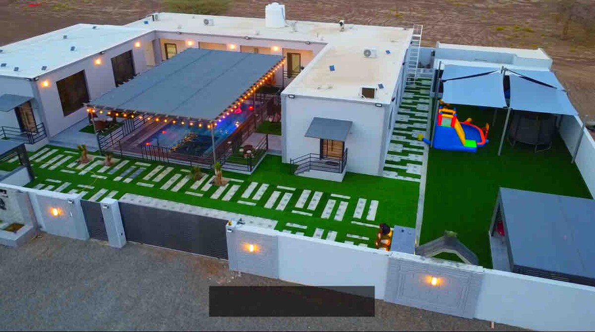 Casa de descanso Wadi Bani Khalid: tu escapada perfecta en el valle más hermoso de Omán. A pocos minutos de las piscinas turquesas, ofrecemos comodidad, privacidad y auténtica hospitalidad omaní. Disfruta de una villa familiar con 3 dormitorios, balcones privados, piscinas para adultos y niños, habitaciones de estilo hotelero, asientos al aire libre con vistas a la montaña, una cocina totalmente equipada, juegos y una ubicación privilegiada cerca de la cueva de Mqal, el fuerte de Al-Awina y pueblos pintorescos. Donde la comodidad se encuentra con la naturaleza.