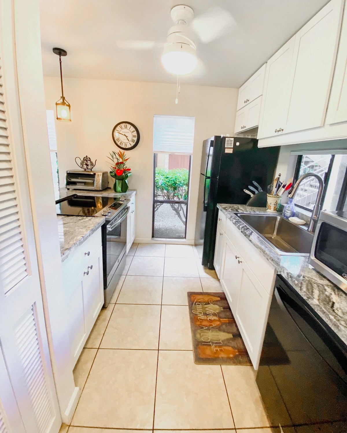 This vacation condo has a bright and open floor plan with a laid back, 'don't rush me, I'm on vacation' feel. Sliding panels between the living room and master bedroom. Sliding glass doors along the entire lanai. Beach towels, boogie boards and folding chairs for your beach outings. Complete kitchen, Cable TV, WiFi, Smart TV allows for login to Netflix, Amazon Prime, etc. Minutes away from the beautiful Kona coast beaches, shopping and fine dining.
