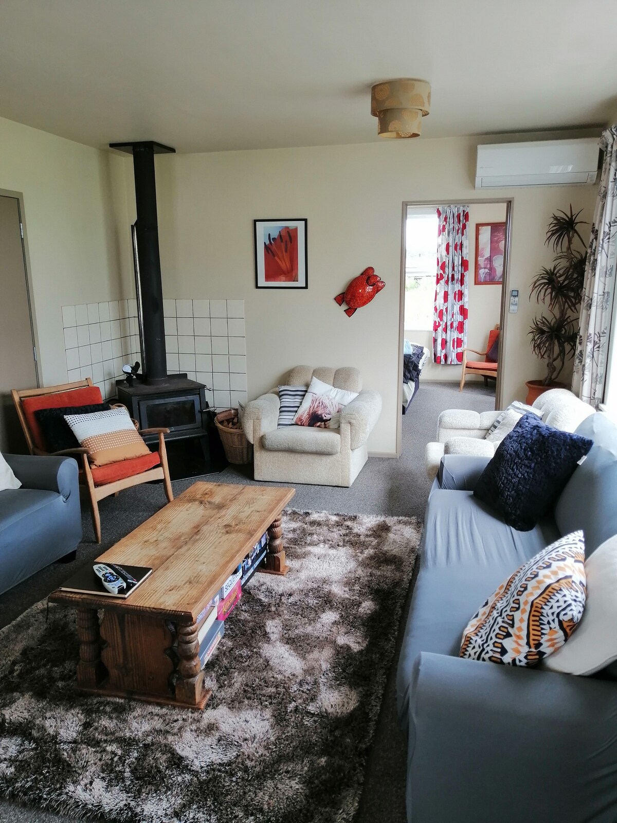Ten en cuenta que se trata de una casa de vacaciones sin servicio. Tendrás que suministrar tu propia ropa de cama y toallas, etc. Nuestro maravilloso bach lleno de carácter, es una antigua casa de molino que pertenecía al molino de madera local de los años 1940-50. Luego pasó varios años como el club de esquí Tauranga, antes de ser cuidadosamente restaurado en un bach groovy lleno de encanto rústico. Es el lugar ideal para escapar y relajarse, o para utilizarlo como base después de tus aventuras en octano por Central Plateau.
