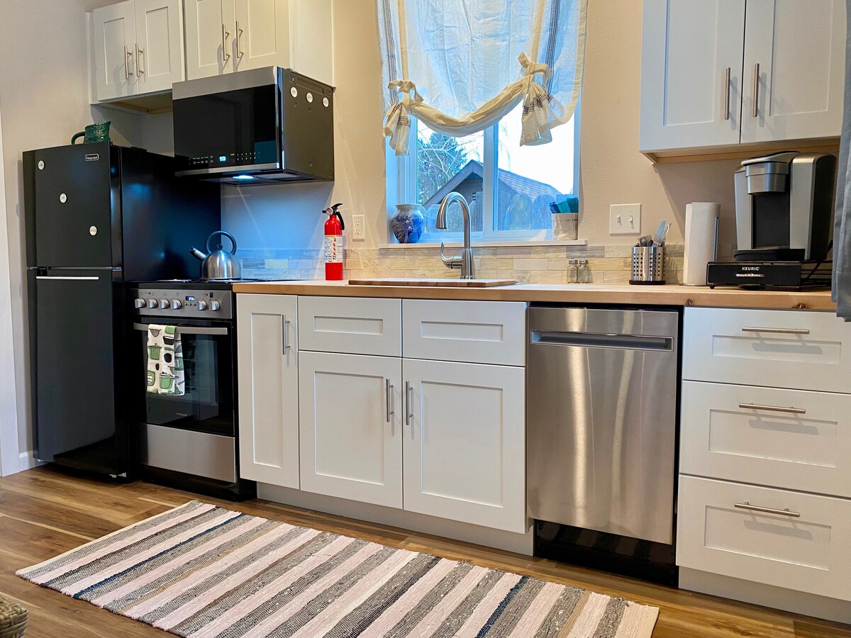 CASA LUNA ~ Bienvenido a nuestro lujoso bungalow con suelos de bambú, comodidades modernas y un jacuzzi de hidromasaje Hot Springs de 52 chorros. Disfruta de una ducha de efecto lluvia tipo spa con azulejos italianos con textura de lluvia. Dos camas tamaño queen en habitaciones con cerradura, ventanas y vegetación. Cocina, bar y comedor abierto con electrodomésticos de alta gama y entretenimiento en un televisor 4K de 65 pulgadas. Amplio porche trasero para vivir al aire libre y jacuzzi privado. ¡Experimenta la máxima relajación a poca distancia a pie de WWU y a 5 minutos en coche del centro de Walla Walla!