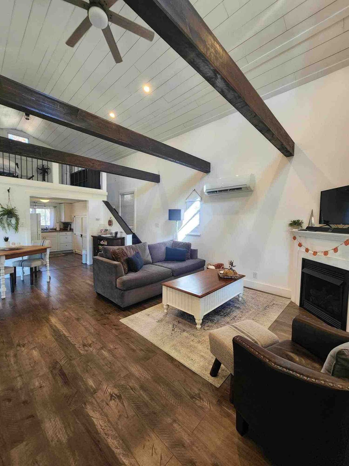 Escape to your own private lake retreat. This cozy rustic-modern tiny home sits steps from an 18-acre spring-fed lake with a sandy beach, kayaks, great fishing, and peaceful water views. Relax in the hot tub at sunset or unwind on the deck surrounded by nature. Inside you’ll find a lofted bed, kitchenette, full bath with shower, washer/dryer combo, and everything you need for a comfortable stay. Perfect for couples or solo guests looking to unplug and recharge.