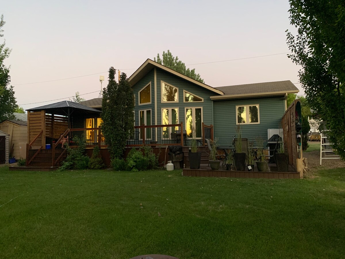 Ofrecemos una casa de campo totalmente equipada pradera perfectamente adecuado para los viajeros, las familias, los observadores de aves y los cazadores. Se encuentra a 12 km al norte de Morse Saskatchewan y cerca del lago Diefenbaker. Incluye 5 camas tamaño queen con edredones/almohadas de plumas (3 dormitorios en la planta superior, 1 piso principal, 1 sótano) , 52 en pantalla plana y TV satelital y TV por satélite, DVD, lavadora/secadora, microondas/lavavajillas. Se admiten mascotas (incluidos los caballos) Las comidas preparadas por la granja local están disponibles para pedir, así como carne de res/pollos/huevos criados localmente.