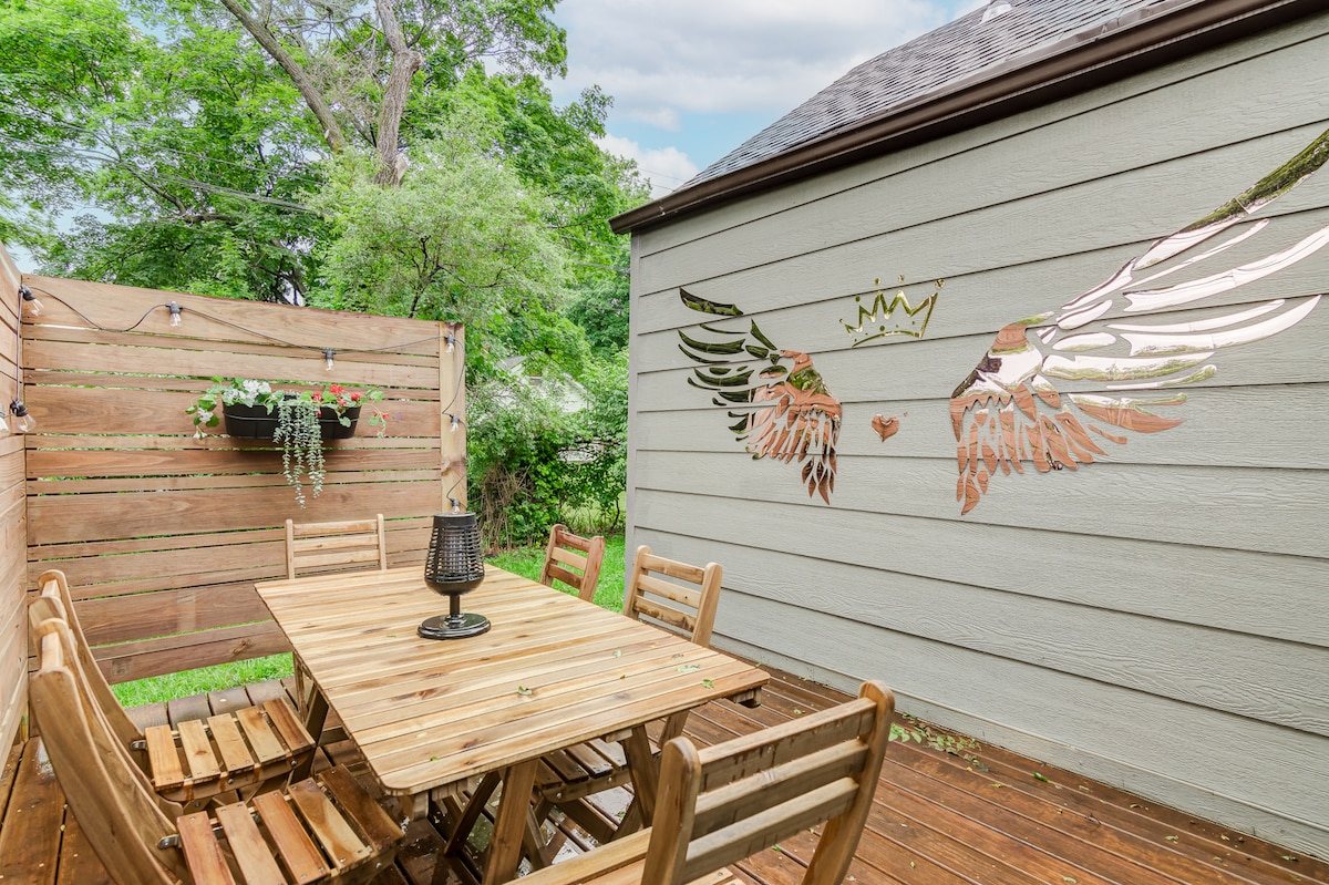 🏡 Waldo Walkabout – Your cozy KC bungalow! 🛏 2 Queen bedrooms with Smart TVs 🛁 1 spa-like bathroom with luxury Tommy Bahama products 🍳 Fully stocked kitchen + coffee bar (Keurig, French press, pour-over) 🛋️ Living room with plush sectional & 55" Smart TV 🍽️ Dining table for 6 + mixology set 🌳 Fully fenced backyard & shaded deck 🐾 Pet-friendly with secure yard 🚗 Private driveway & street parking in vibrant Waldo neighborhood