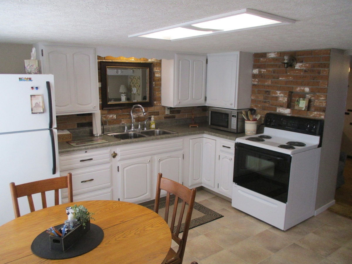 Relájate con toda la familia en este alojamiento tranquilo. El piso principal tiene 2 dormitorios, ducha accesible para personas con discapacidad,cocina, sala de estar y cocina pequeña. El sótano también incluye espacio para alojarse, lavadora, secadora, inodoro y ducha estilo garaje. También tiene un garaje para 2 autos que conduce a la cocina. Totalmente amueblado ( las fotos se tomaron justo después de poner una alfombra nueva y pintura). ¡Los propietarios están a poca distancia si es necesario!