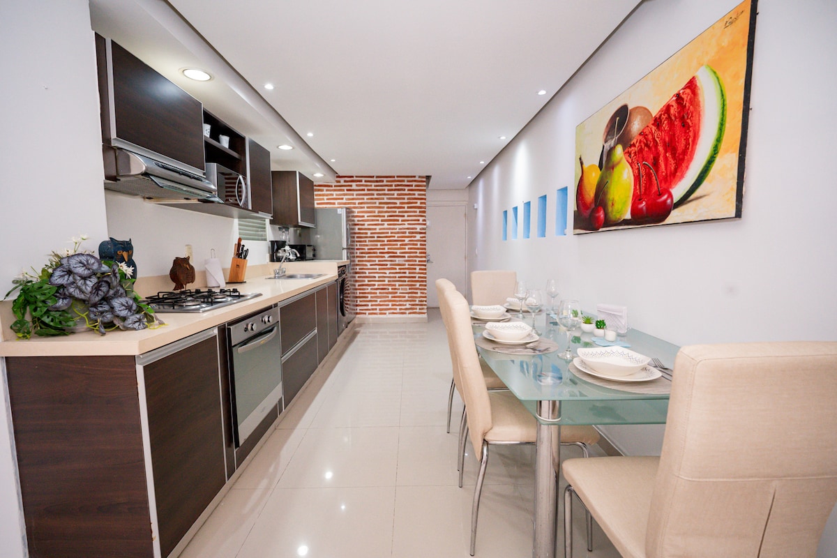 Este acogedor espacio se encuentra ubicado en el barrio del Laguito, sector turístico y residencial rodeado de playas a pocos pasos del hotel Hilton, a solo 10 minutos del centro histórico y 15 minutos del aeropuerto. Es la ubicación perfecta para parejas, familias o grupos pequeños de amigos que desean disfrutar de las playas y visitar el centro histórico con sus múltiples plazas, museos y atracciones. No dudes en elegir hospedarte con nosotros y disfrutarás una gran estancia.