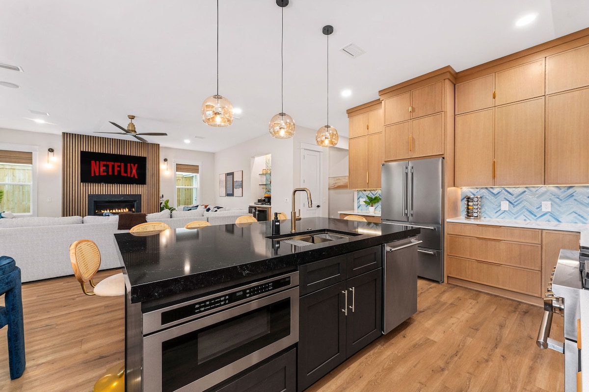 Palms By The Beach: donde el lujo se une a la comodidad ¡Tu mejor escapada familiar te espera! Esta casa de lujo ofrece la privacidad de un refugio personal con la comodidad de un estilo de vida 30A. ¡A 8 minutos de Rosemary Beach, a 10 minutos de Pier Park y a poca distancia en auto de Destin! Zona exterior: piscina privada, zona de parrilla y ducha exterior. Equipo adicional: uso gratuito de 2 triciclos para adultos y 3 patinetes para niños. Mejora tu estancia: pregúntanos sobre la posibilidad de reservar nuestro carrito de golf de 4 plazas (USD 85 por día) para que las excursiones a la playa sean muy fáciles.