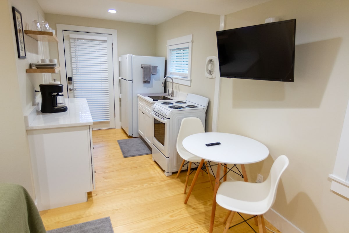 Short walk to beach and Gulf. Adorable designer studio w/ private entrance on back side of main cottage which is also rented. 2 Guest Maximum. Marble floors /10’ ceilings! Fully stocked kitchen, Studio is tiny but a great beach bargain. See photos. Queen bed & 4' love seat. Enough room to relax after the beach. Large deck with umbrella in backyard . Walk to beach with parking on property. For Main House Rental: https://www.airbnb.com/hosting/listings/editor/44459884/view-your-space