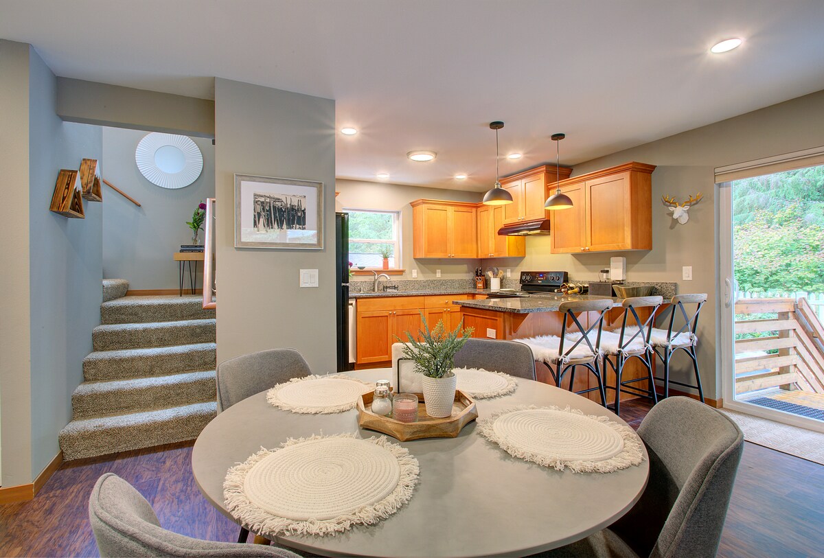 Bienvenido a Zen Hideaway, tu serena escapada en Glacier. Esta encantadora cabaña de tres dormitorios y dos baños completos tiene capacidad para ocho personas y ofrece un refugio acogedor pero moderno. Con wifi rápido, un jacuzzi relajante, comidas al aire libre y una chimenea, tu comodidad es nuestra prioridad. Ubicado cerca del monte Baker, los entusiastas del aire libre pueden disfrutar del esquí, el senderismo y emocionantes aventuras. Abraza la simplicidad de la naturaleza en Zen Hideaway.