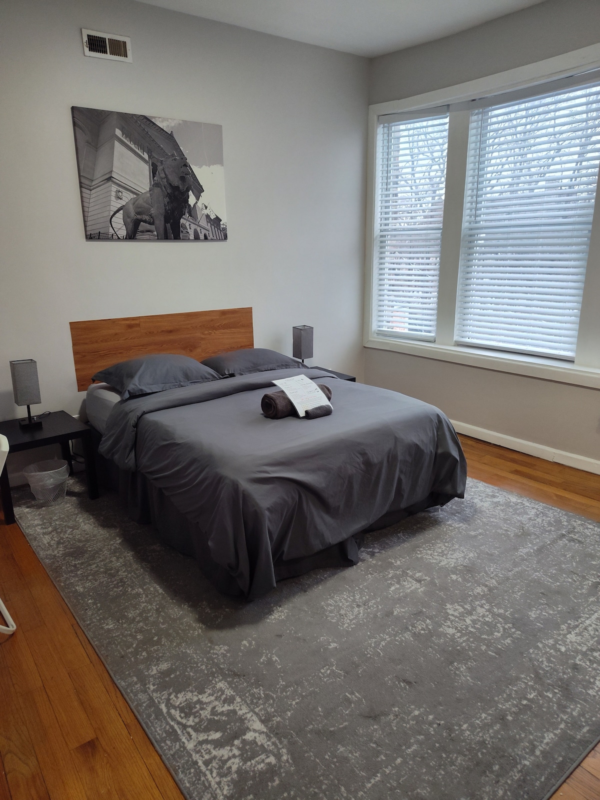 Disfruta de todo el apartamento para ti en este alojamiento limpio y moderno de 2 dormitorios y 2 baños, diseñado para la comodidad y conveniencia. Perfecto para parejas, familias o viajeros de negocios que buscan una estancia tranquila y acogedora. Disfruta de una cocina completa, un baño estilo spa y estacionamiento gratuito en la calle. A minutos de UChicago, McCormick Place, Soldier Field, Shedd Aquarium y acceso rápido a la I-90, Lake Shore Drive y el centro de Chicago.
