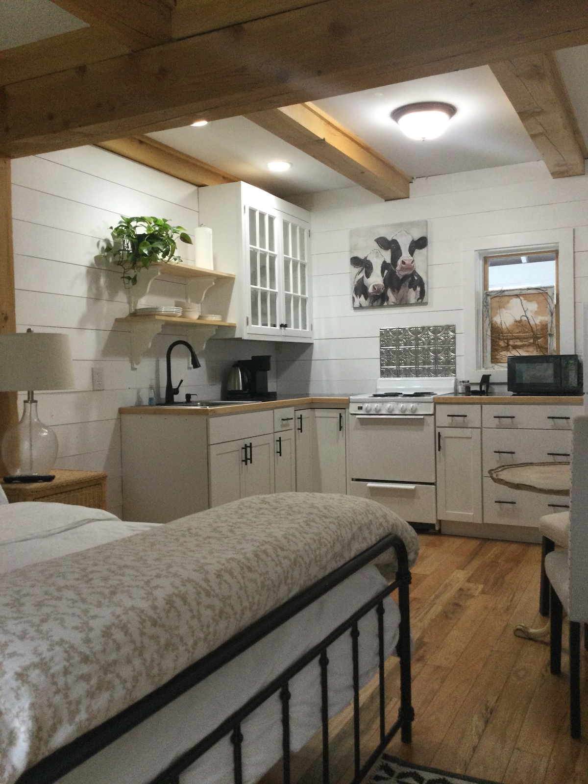 Estudio de granja moderno renovado en las Montañas Blancas. Somos la cuarta generación en la casa de nuestra familia. Postes y vigas con cocina nueva, tablas superpuestas, suelos de madera y baño grande, y excelentes vistas a los campos. 36 acres de campo, bosques y corta tu árbol de Navidad aquí. Si tienes suerte, podrás ver los caballos en el campo. Cerca de senderismo, esquí y lagos. Waterville Valley a 9 millas, Loon Mtn. a 15 millas. Campo de golf Owls Nest. Entrada privada/estudio privado.