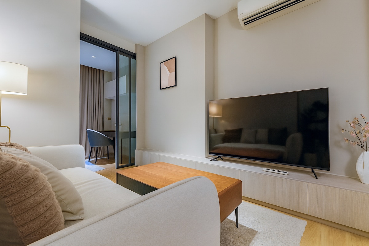 Amplia unidad lujosamente decorada de 1 dormitorio, 1 vestidor, 1 sala de estar y 1 baño para que hasta 2 huéspedes se alojen cómodamente. A pocos minutos a pie de Ekamai-Thonglor, ¡la principal zona de negocios y de vida nocturna de lujo que todos los turistas deben visitar! Para desplazarse, sin duda es muy fácil, ya que está en el centro de la ciudad. Es fácil conseguir un taxi. Para comer, puedes ir cómodamente al Seven Eleven junto al edificio. Hay varios restaurantes al otro lado de la calle. El mercado nocturno local está justo enfrente del apartamento.