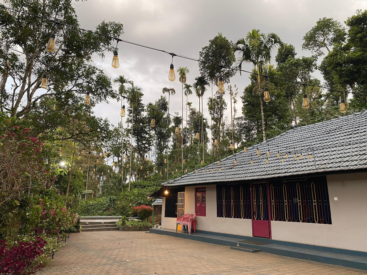 Bienvenido a nuestro alojamiento en casa de familia, un refugio inmerso en la encantadora belleza de Wayanad. Imagina despertarte con la suave lluvia y la brisa del monzón: una auténtica experiencia de Wayanad. Ubicado en medio de plantaciones de cardamomo, pimienta y café, nuestra casa familiar ofrece vistas panorámicas y cautivadoras fragancias de especias, lo que garantiza una estancia encantadora. Para llegar a nuestro retiro, disfruta de un viaje panorámico a través de las fincas de té de Wayanad. Sumérgete en la tranquilidad de nuestra casa familiar, donde el esplendor natural se combina con un ambiente hogareño y reconfortante.