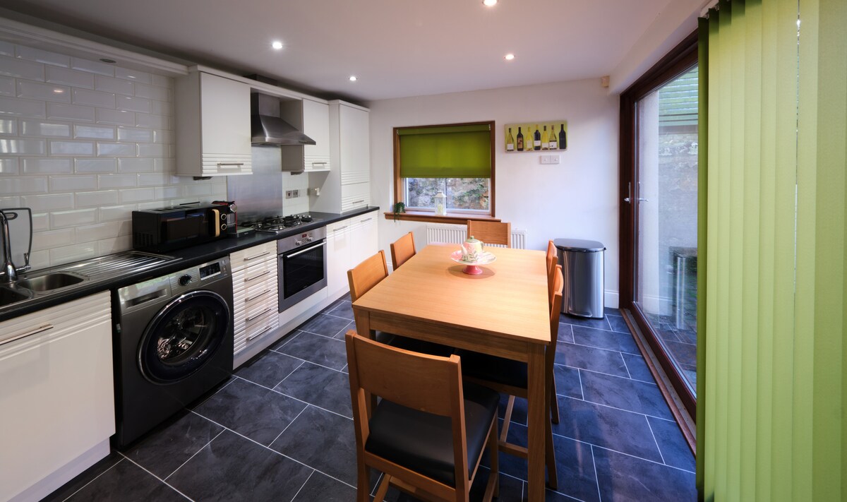 This quaint and unique place is close to Dunfermline town centre, Pittencrieff Park and a short walk to both bus and train stations for access to Edinburgh etc. Dunfermline has many historical sites including an abbey. The flat is situated on a quiet residential street with free on street parking. Guests have the use of the property owners garden and patio. The flat has it's own rear access with security lighting. PLEASE NOTE this property is over 100 years old and has lower ceilings of 195cm.