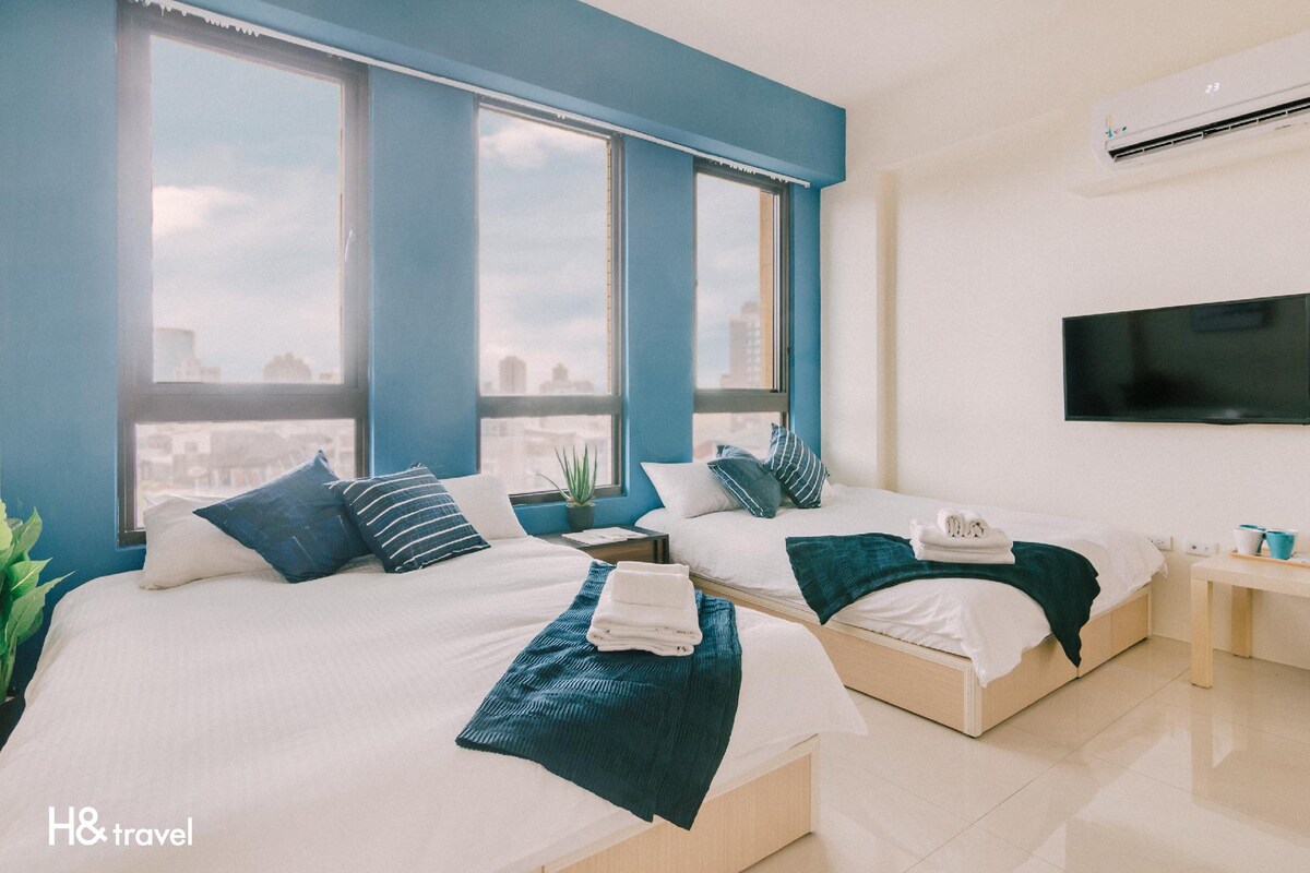 [Anping 522] Habitación azul del Danubio para cuatro personas, Tainan B&B, cerca de la calle vieja de Anping, distrito comercial de Hai'an, mercado nocturno del jardín