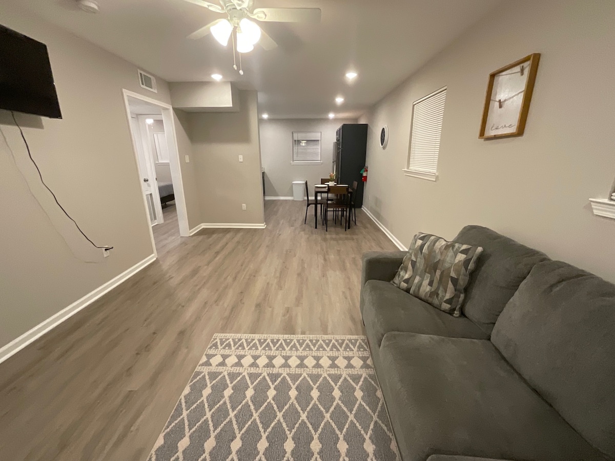Apartamento amueblado en el primer piso en una zona céntrica tranquila, segura e histórica. Incluye aparcamiento fuera de la calle y lavadero independiente. Electrodomésticos nuevos y nuevas unidades de aire acondicionado/calefacción. Recién remodelado. Da un tranquilo paseo panorámico hasta el centro cívico de Lake Charles y la orilla del lago, donde podrás disfrutar de impresionantes puestas de sol. O camina hasta uno de los muchos restaurantes y disfruta de la cocina y la música del suroeste de Luisiana. ¡Y a solo 10 minutos en coche de cualquiera de los 3 casinos! Incluye patio privado con muebles.