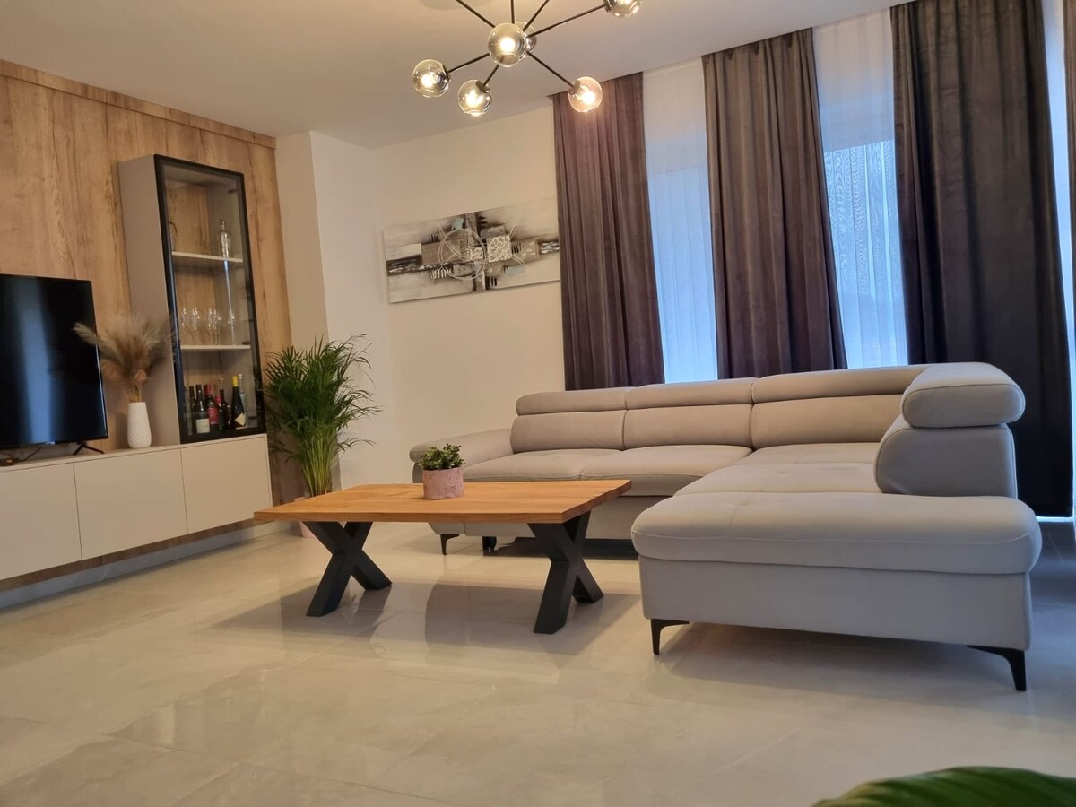 Uživajte u odmoru u modernoj vili s privatnim bazenom, dvije udobne spavaće sobe, vanjskom saunom i jacuzzijem. Idealna je za opuštanje i bijeg od svakodnevnice, pružajući savršenu kombinaciju luksuza i udobnosti.