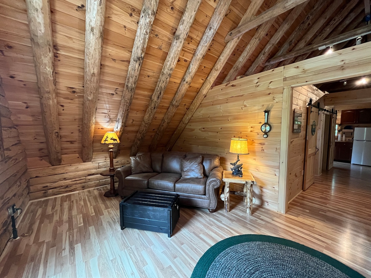 Treat yourself to a relaxing retreat to this lovely loft in the woods! This newly renovated apartment features 1 Queen bedroom, 1 full bath, full kitchen & living area w/ sofa bed. Finished in gorgeous pine for that cozy cabin feel. Snowmobile Trail directly behind Cabin! Only a few miles away to ATV trail access! Conveniently located near town for all your needs. Private/plentiful parking, including garage.