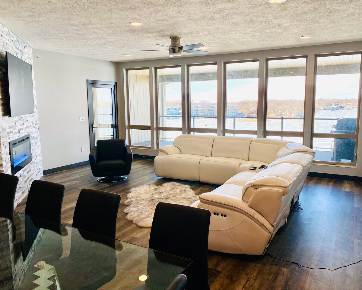 Welcome to The Lakefront Cove — a beautifully designed, spacious 4-bedroom, 3-bath lakefront home tucked away in a peaceful cove on East Lake Okoboji. Iowa Great Lakes attractions are just minutes away, including historic Arnolds Park Amusement Park, Central Emporium and seasonal Farmer’s Market. Shops, restaurants, live entertainment, walking trails, convenience stores, golf courses and more are close by too. Lake days are the best days!
