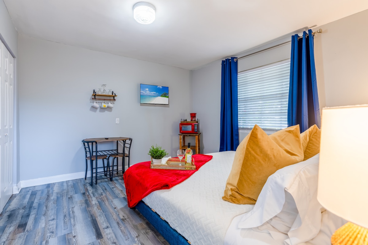 ¡Encantador apartamento tipo estudio adjunto a una casa en el histórico Flamingo Park! A poca distancia a pie de todo lo que West Palm Beach tiene para ofrecer, incluido el centro de convenciones de Palm Beach, el centro Kravis, The Square, el Museo Norton, el mercado público de Grandview y mucho más. Entrada privada sin llave. Disfruta de wifi, televisión inteligente, aire acondicionado frío y una cocina completa y baño. Servicio de lavandería en el lugar. ¡El refugio perfecto para unas vacaciones o un lugar acogedor para trabajar desde casa!