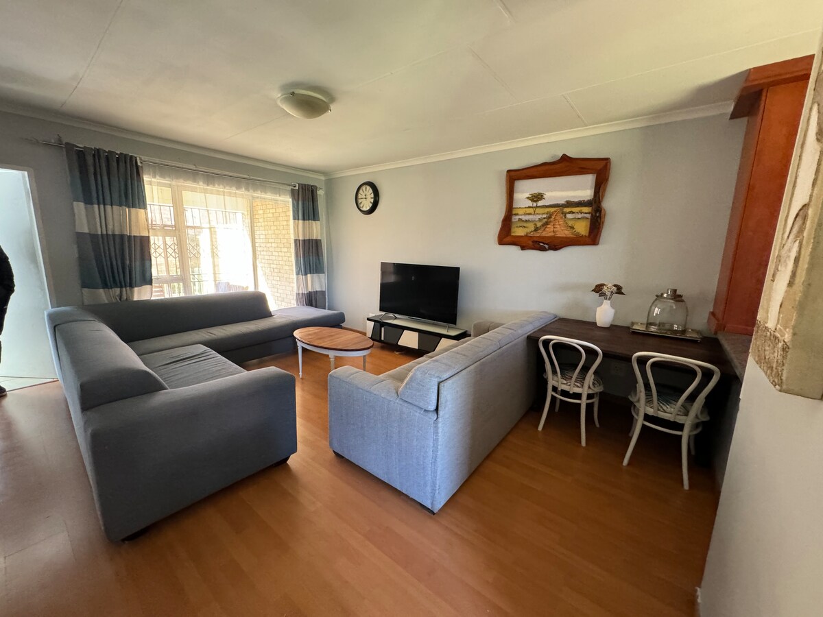 Alojamiento espacioso y soleado. Un montón de espacio para relajarse , mientras disfrutas del clima de alta velocidad. Siéntate y disfruta de tu café por la mañana en un jardín colorido, que observa la avifauna . Nueva área pavimentada con mesa y sillas, un braai bajo petición. Por favor traiga su propio carbón. Ahora con la copia de seguridad de la electricidad ⚡️y el agua 💦