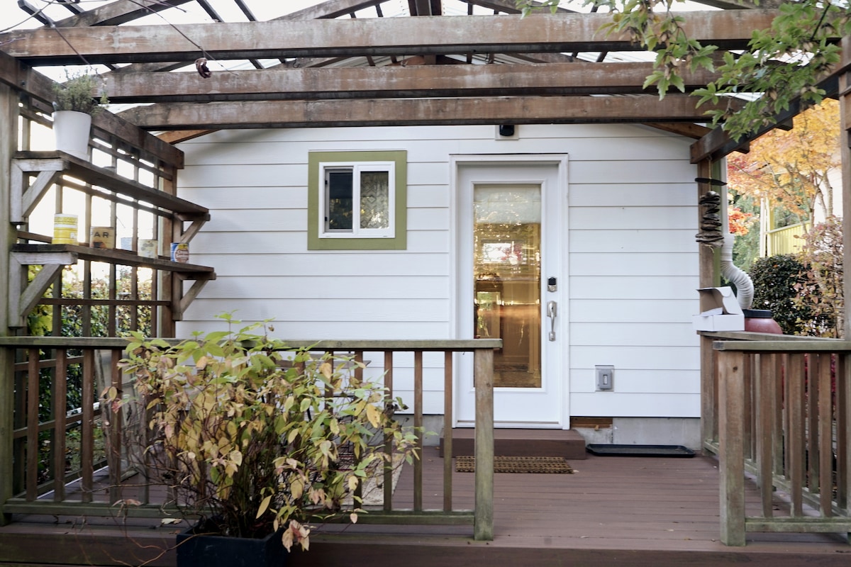 Escapa del bullicio de la ciudad y relájate en un acogedor santuario en el patio trasero. Prueba la cerveza artesanal local en una silla Adirondack en el jardín. Mira la televisión de pantalla ancha desde la cama y prepara café por la mañana. Esta encantadora casa de campo viene completa con cama tamaño queen, suelos de madera, cocina americana con fregadero estilo casa de campo, isla de cocina, nevera con congelador, cafetera Kuerig, tostadora, olla de cocción lenta y placa de inducción. Con un calentador de agua de 50 galones habrá suficiente agua caliente para todas tus necesidades. El baño de alta gama se completa con un lavabo, inodoro y accesorios Kohler. También hay un armario para colgar y guardar ropa y bolsas. La casa se calienta a través de calentadores eléctricos infrarrojos de alta eficiencia montados en el techo. También hay un sistema de ventilación en toda la casa para mantener el aire fresco durante todo el año (el interruptor para encenderlo/apagarlo o subir/bajar la temperatura está dentro del armario). También hay TV por cable, wifi y un reproductor de DVD. Amazon y Netflix están incluidos en el televisor inteligente para que los uses con tus propias contraseñas. Hay aparcamiento gratuito disponible en la calle delante de la casa principal/casa de huéspedes. La casa de campo está a un corto paseo a través de un camino de grava a la derecha de la casa principal hacia la parte trasera de la propiedad. Los huéspedes pueden utilizar la zona de estar del patio fuera de la casa de huéspedes, que incluye sillas Adirondack, mesa de picnic y una parrilla Weber. Te invitamos a ponerte en contacto con nosotros por correo electrónico, mensaje de texto o móvil en cualquier momento antes o durante tu estancia para responder a cualquier pregunta que tengas. Durante tu estancia, nos gusta dejar la interacción personal a discreción del huésped. Valoramos tu privacidad y nos encantaría darte un cordial saludo de bienvenida si pasamos. Sin embargo, siempre estamos disponibles y estaremos encantados de charlar, solo tienes que decírnoslo. El barrio de Ballard en Seattle tiene muchos restaurantes, bares, cafeterías, un cine, panaderías y tiendas peculiares. No te puedes perder el mercado de los domingos. Golden Gardens Beach, Ballard Locks y el Museo del Patrimonio Nórdico están cerca. La casa está a unos 20 minutos en coche del centro de Seattle. A una manzana de la cabaña puedes coger el autobús n.º 40 al centro de Seattle, Fremont y South Lake Union. Uber y Lyft están disponibles en este barrio. Grant y Bev son amantes del jardín, ya sea trabajando en el jardín, haciendo barbacoas fuera de la casa principal o simplemente relajándose. Nuestros hijos también son entusiastas del aire libre, por lo que entrarán y saldrán del espacio del jardín alrededor de la casa principal. También hay un trastero construido en la parte posterior de la casa de huéspedes con acceso solo desde el jardín que usamos de vez en cuando. Respetamos tu privacidad y espacio. El patio fuera de la casa de campo es para tu uso exclusivo.