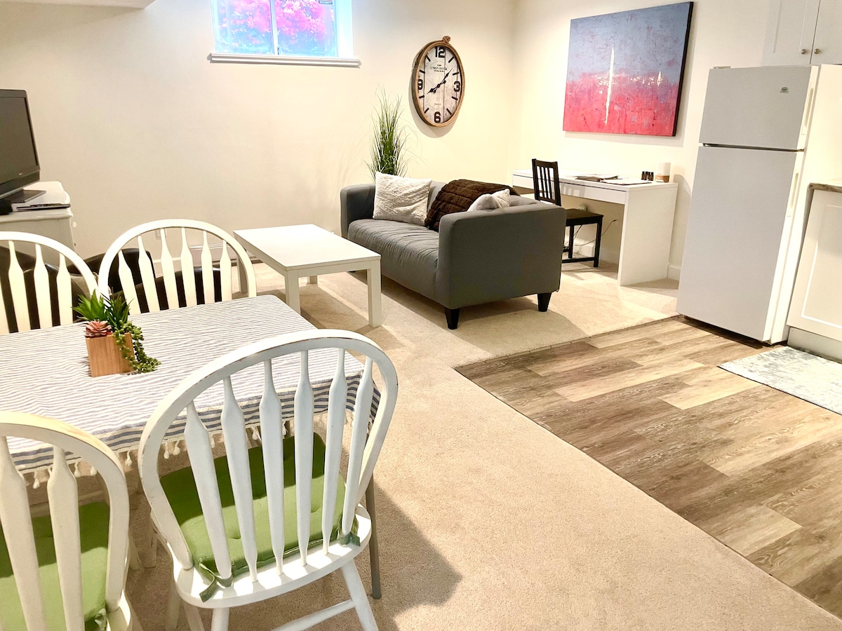 Encantadora suite en el sótano recién reformada y bien equipada en North Vancouver. Esta suite de 2 dormitorios de 900 pies cuadrados (85 metros cuadrados) está situada en una calle muy tranquila, a poca distancia a pie de tiendas de comestibles y otros servicios. A pocos minutos de múltiples parques, ciclismo de montaña y rutas de senderismo, es ideal para aventureros activos al aire libre. Somos lugareños de North Van con amplio conocimiento de la zona para ayudarte a moverte. Vivimos a tiempo completo en la casa de arriba y estamos disponibles para hacer que tu estancia sea más cómoda.