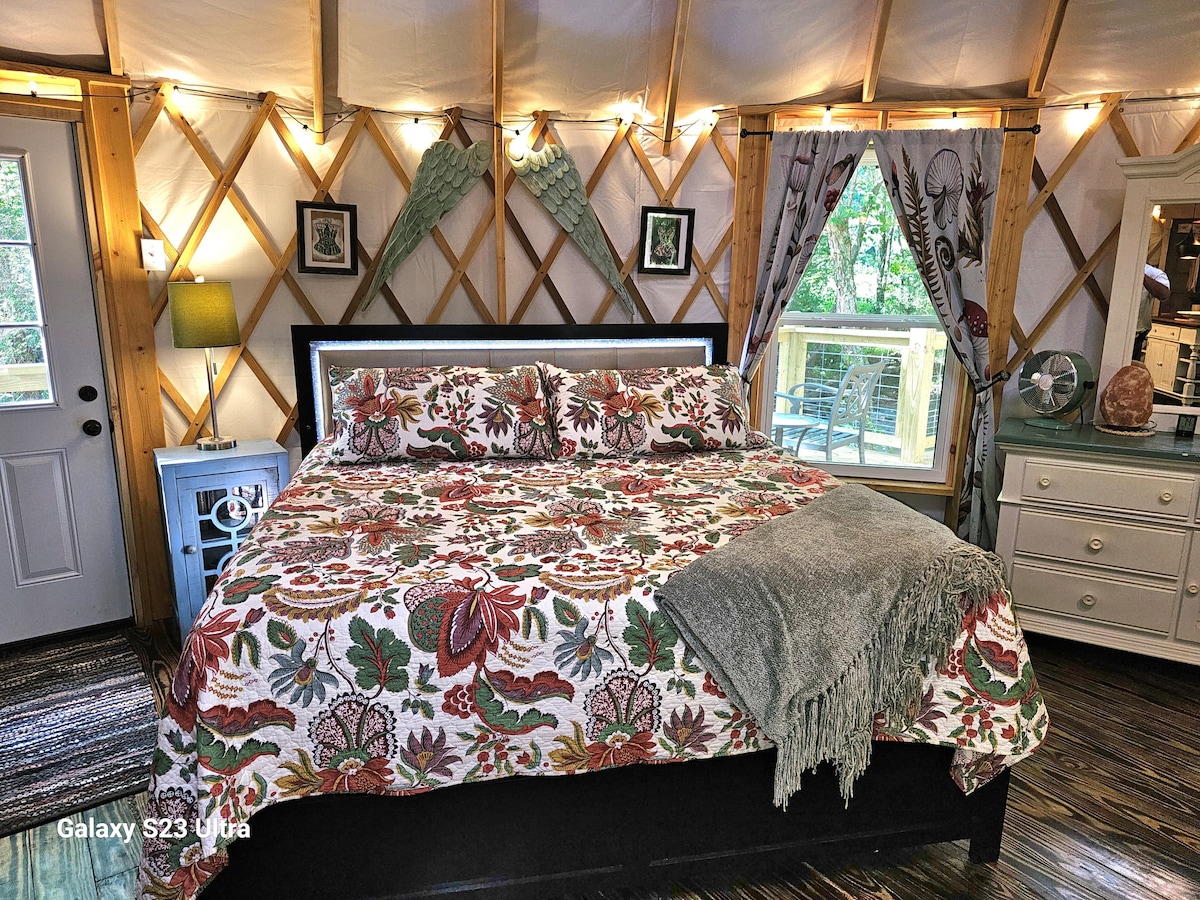 Bluestone Dome es una cúpula de campamento de lujo que ofrece una forma única e inolvidable de experimentar la naturaleza. Esta cúpula está diseñada para proporcionar una experiencia de campamento lujosa y relajante para dos personas, al tiempo que permite a los huéspedes sentirse conectados con la naturaleza. Relájate en el jacuzzi o junto al estanque. Disfruta del fogón y duerme bajo las estrellas en una cama tamaño king. Un lugar estupendo para una escapada romántica o para celebrar una ocasión especial. Nota: No admitimos niños ni mascotas.