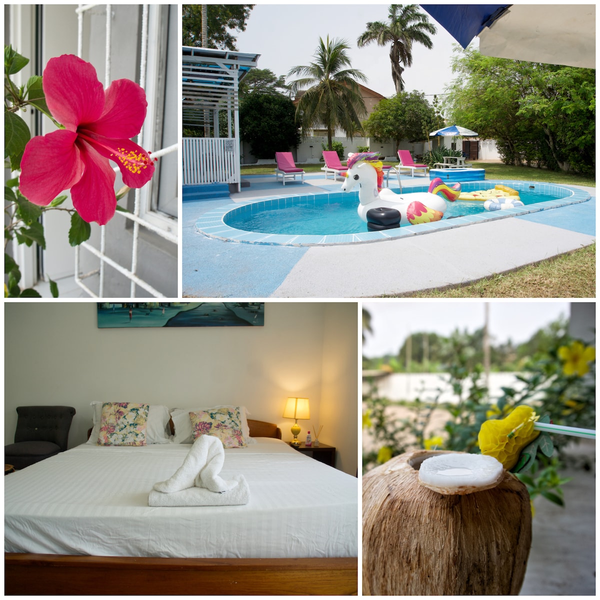 Nuestra casa de playa está perfectamente ubicada en un entorno tropical idílico con una tranquila playa de arena a la vuelta de la esquina. Su propia casa privada con jardín con sombra de palma, en un ambiente seguro y acogedor para los niños.