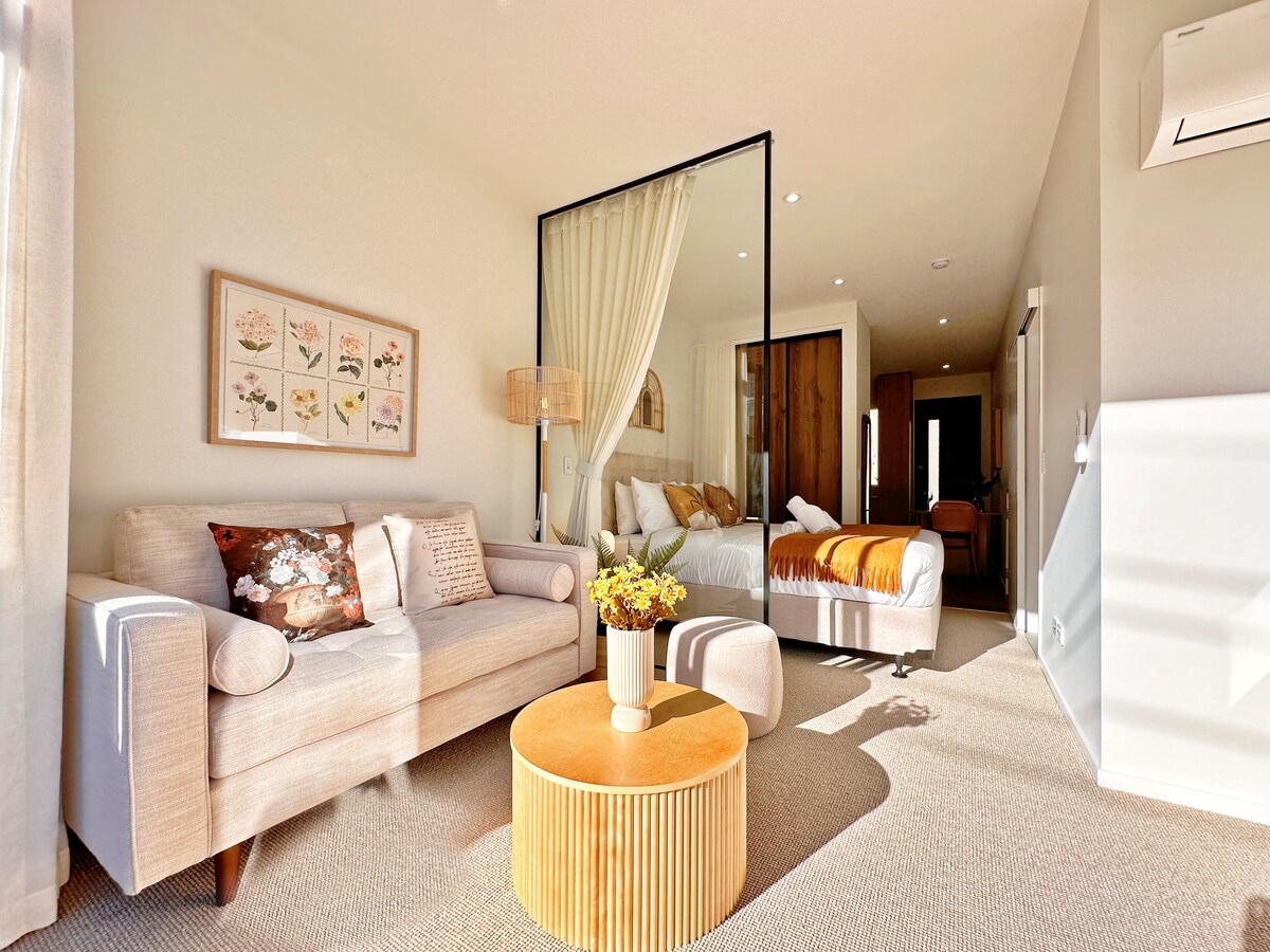Escápate a una cabaña tipo estudio privada y contemporánea en la codiciada zona de Grey Lynn/Westmere de Auckland. Este refugio iluminado y tranquilo es perfecto para viajeros solitarios o parejas. Cuenta con una cama tamaño queen, aire acondicionado, una terraza privada y un proceso de llegada autónoma sencillo. Un refugio elegante y aislado para explorar la ciudad, con capacidad para dos huéspedes.