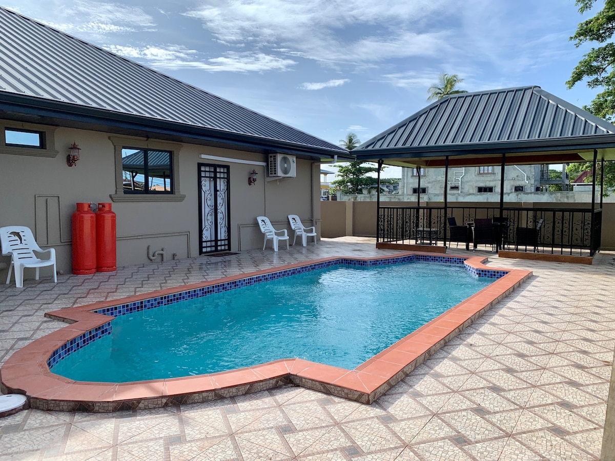 A Villa with luxurious furnishings and fully equipped for all your #staycation vacations. Features 3 Fully Airconditioned Suites with a total of 8 standard beds and a sleeper sofa for your comfort. There is a special outdoor kids play area including a swimming pool with cosy furnished poolhouse, a BBQ grill for the outdoors with large patio seating, board games, TV and a bicycle for nearby useage. All strategically located shortly after the Signal Hill Traffic lights.