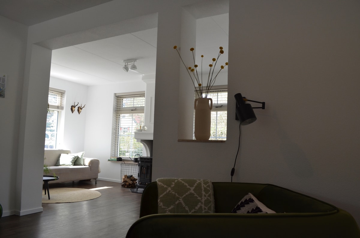 En un hermoso lugar en las afueras de la frisona Noordwolde, donde los pájaros son numerosos, se encuentra esta encantadora y acogedora casa. Completamente amueblada, con una estufa de pellets y una estufa de leña, ¡este es realmente un lugar para relajarse! La casa tiene su propio jardín y está al lado de un bosque, donde se puede dar un agradable paseo y en los alrededores hay muchas más zonas de senderismo. También puedes caminar desde la casa en unos 20 minutos a un bonito lago para nadar.