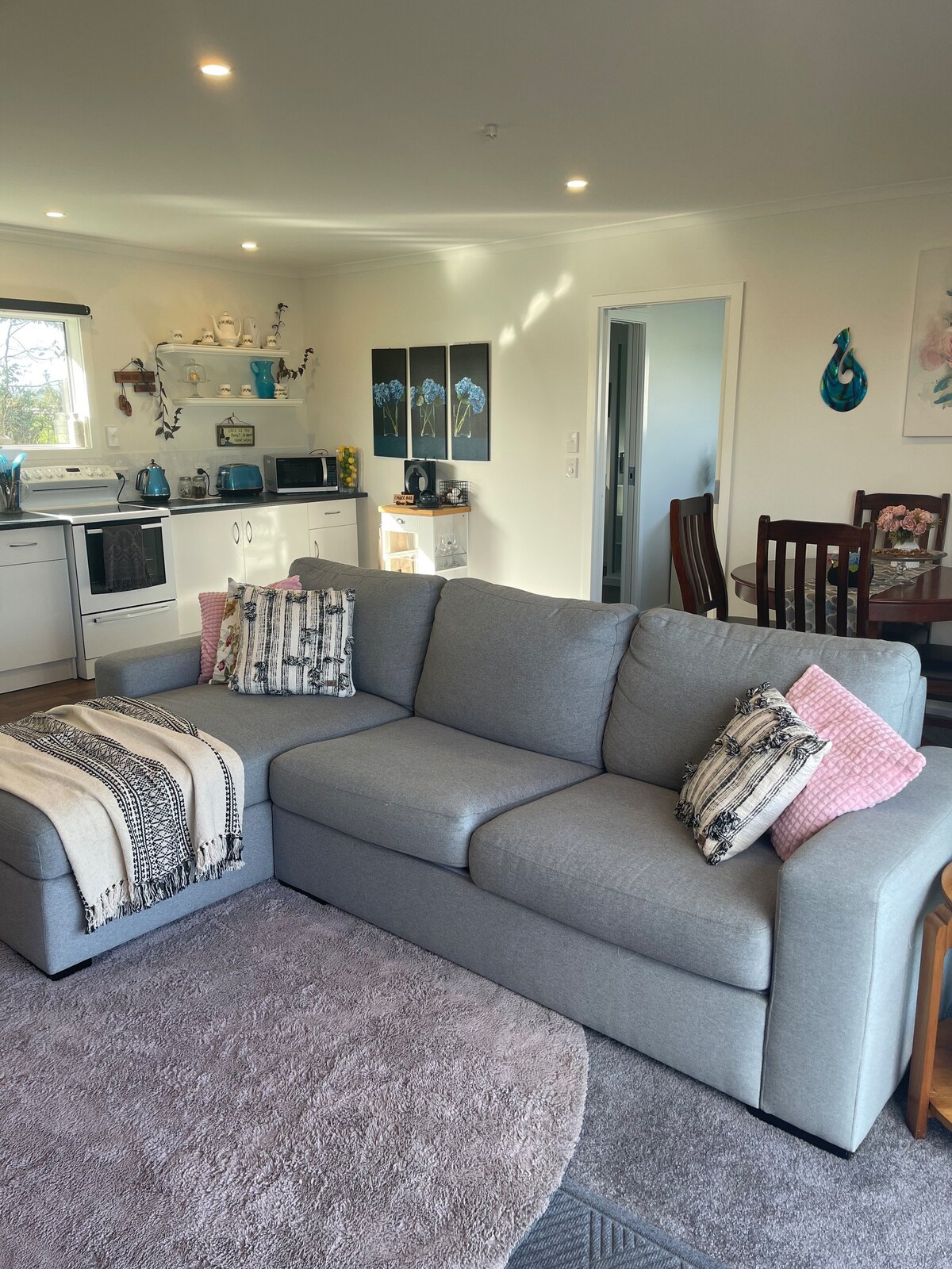 * Sin gastos de limpieza :) * Relájate y desconecta en nuestra pequeña y tranquila granja para huéspedes. Un dormitorio, un baño para dormir con cocina americana. Una cama tamaño king y un sofá cama extraíble. Sugeriría esto solo para niños por el espacio limitado. Puedo proporcionar una cuna de viaje para bebés si se organiza con antelación. A 10 minutos en coche de la playa de Kai Iwi y a 20-25 minutos en coche de Whanganui. Estamos situados en la carretera principal, pero lo suficientemente lejos como para no oír el tráfico. Excelente ubicación para que los niños corran.