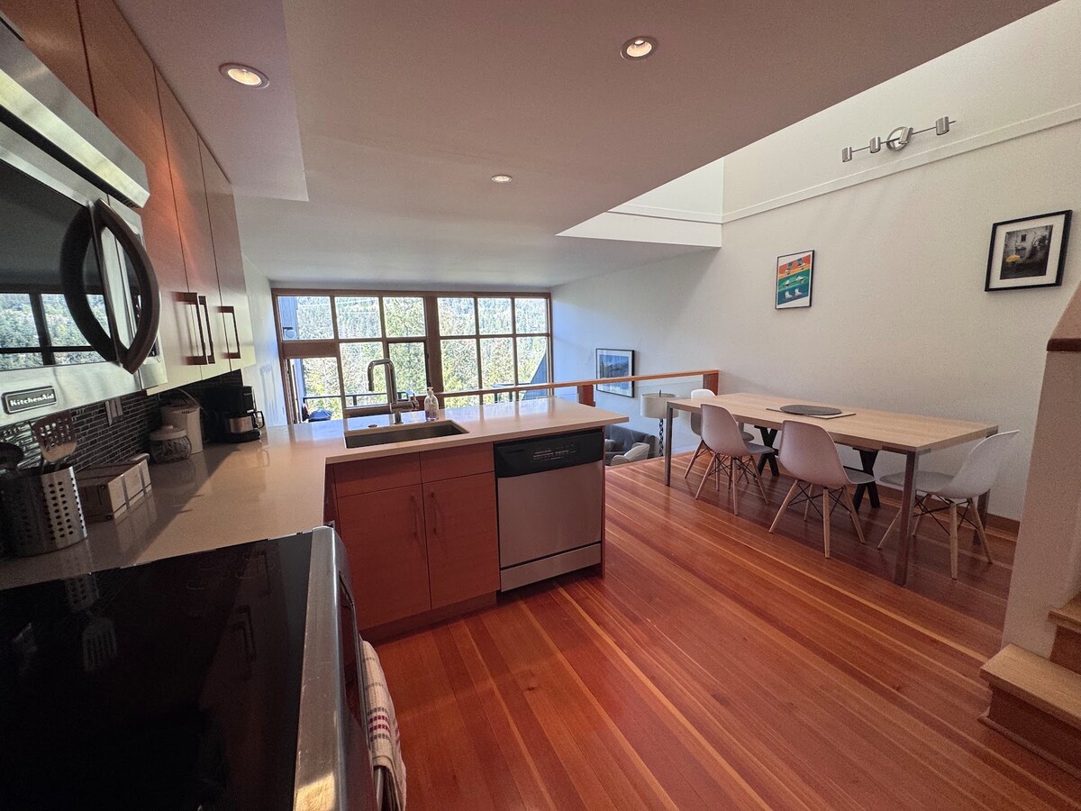 Un dormitorio renovado con bañera de hidromasaje privada, distribuido en dos plantas con dos patios soleados y aparcamiento gratuito. Ubicado enfrente del paseo del pueblo de Whistler, puedes estacionar tu coche e ir andando a todas partes. Disfruta de la comodidad de tener una tienda de comestibles, una licorería, tiendas y restaurantes al otro lado de la calle mientras regresas a casa, a una casa adosada tranquila y acogedora. Accede a los telesillas caminando unos 15 minutos a lo largo del paseo del pueblo o cruza la calle para subir al autobús gratuito.