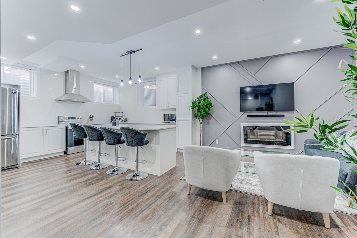 ACOGEDORA y ACOGEDORA, esta moderna suite se encuentra en un barrio tranquilo y familiar de Ajax. A solo 10 minutos de Thermea Spa y Ajax GO Station, y a poca distancia a pie de parques, tiendas y supermercados. Recién construido con acabados de lujo, el espacio de 1000 pies cuadrados incluye calefacción en el piso, una chimenea eléctrica, un amplio sofá y TV inteligente con Netflix/Prime. El centro de Toronto está a 35–45 minutos en auto y el aeropuerto de Pearson o Mississauga a unos 55 minutos.