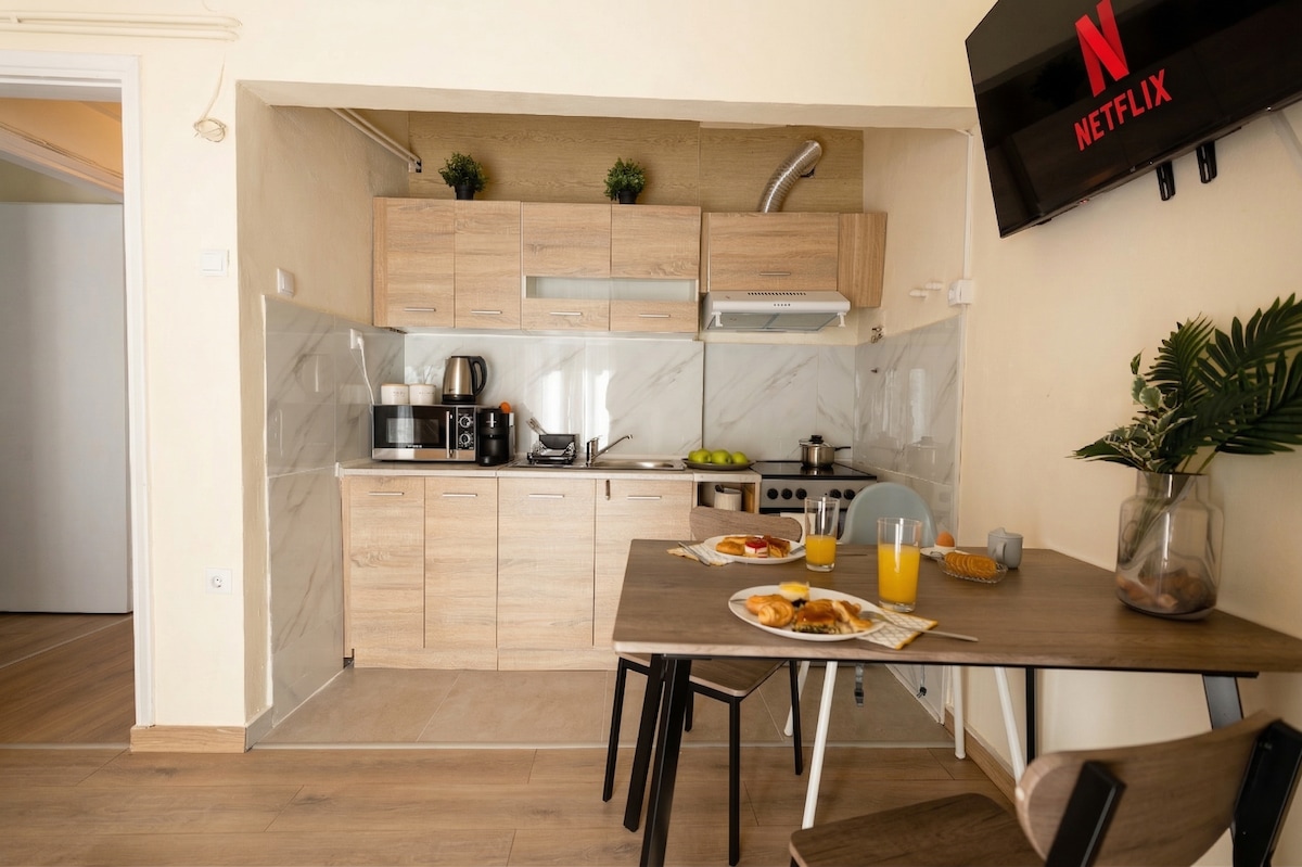A newly renovated studio in a quiet, safe neighborhood in the city center with both air conditioning and heating. Perfect for couples or lone travelers. Ένα πρόσφατα ανακαινισμένο στούντιο σε μια ήσυχη, ασφαλής γειτονιά στο κέντρο της πόλης με κλιματισμό και θέρμανση με φυσικό αέριο. Ιδανικό για ένα ζευγάρι ή έναν ταξιδιώτη.