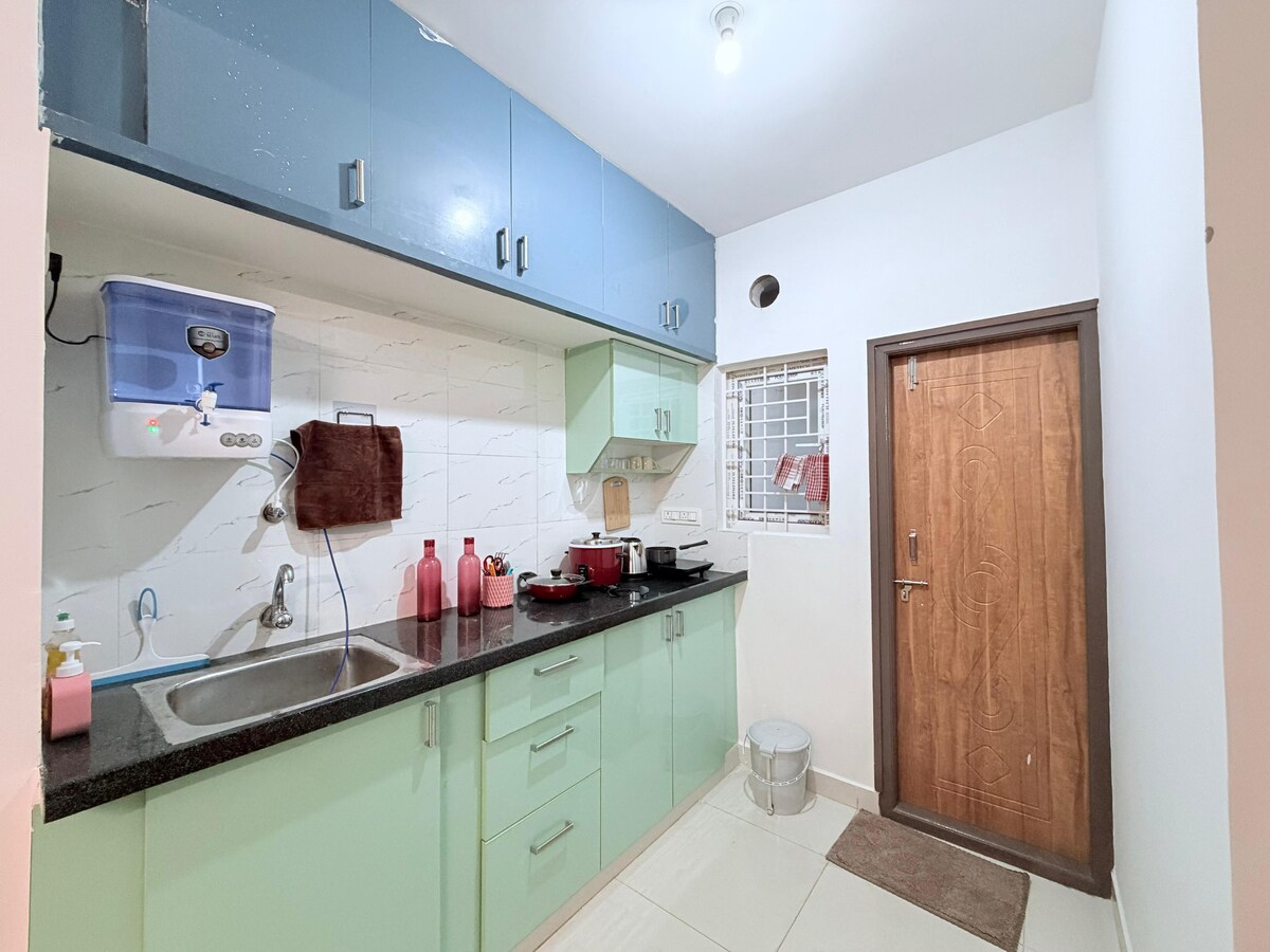 Te damos la bienvenida a nuestra acogedora vivienda de 1 habitación en Nallurahalli, perfectamente ubicada cerca de Whitefield y Marathahalli, dos de los centros tecnológicos y de estilo de vida más dinámicos de Bangalore. Ya sea que estés de visita por trabajo, para una estancia corta o para una escapada relajante, este espacio confortable ofrece el equilibrio perfecto entre comodidad y privacidad. Ubicada en un barrio tranquilo, la propiedad está a solo unos minutos de los principales parques de TI, restaurantes, cafeterías, supermercados y zonas comerciales de Whitefield y Marathahalli.