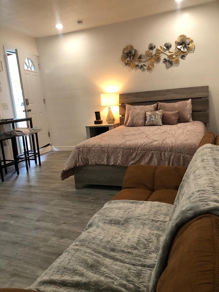 Take it easy at this unique and tranquil getaway.Come to enjoy this beautiful NEW REMODELED Cozy studio with private entrance in a quiet and safe neighborhood.With 1 bedroom,1 bathroom, 1 Queen Bed(Brand new Matress and box spring)and a Sofa Bed,with a NEW AC-HEATHING UNIT installed its a plus.Located just 15 minutes driving from the airport and 7 miles away from the Famous Las Vegas Strip.Stores and restaurants close and a Walmart just 4 minutes away.