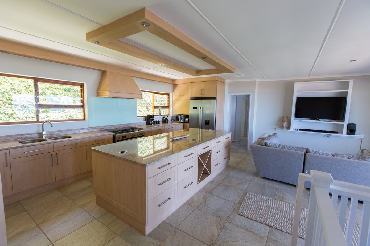 Experience the ultimate coastal lifestyle in our luxury cliff-top home with stunning ocean views from every room. Our organic modern design features natural wood and designer soft furnishings. Dip in our semi heated pool, or enjoy our yoga & chill deck or cook a meal in our designer kitchen. Complete with solar power system & set in a private nature reserve. Just 25 mins from George Airport, 15 mins from the Garden Route Mall and Wilderness. Come unwind in comfort & style.