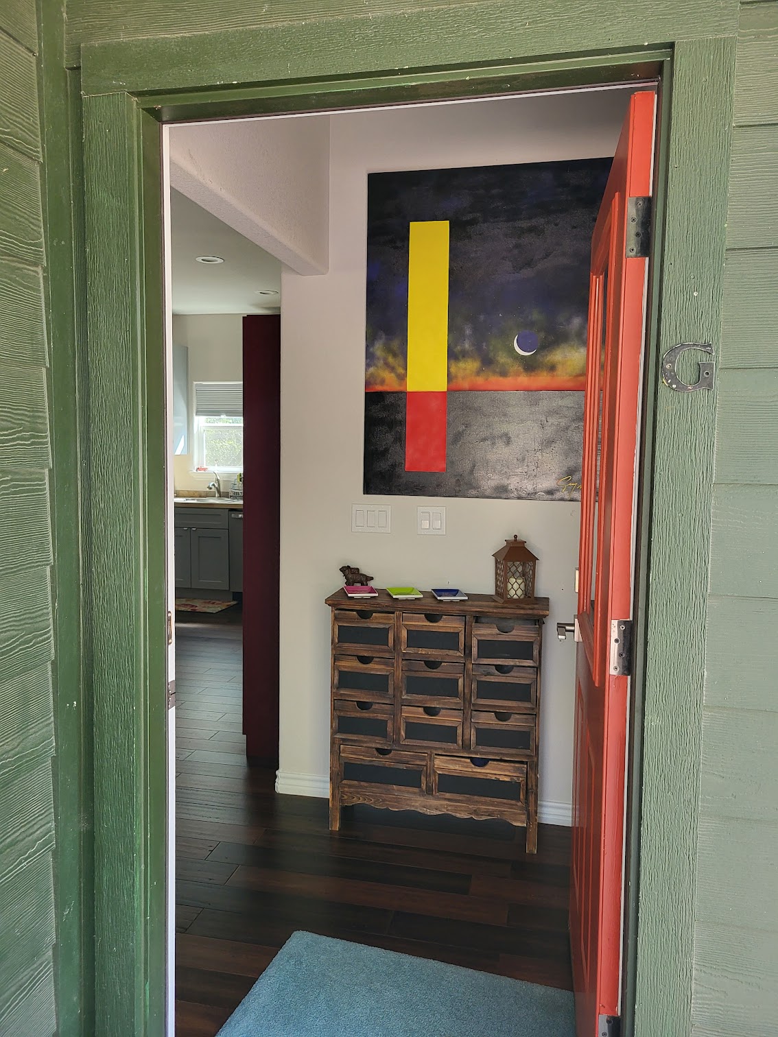 **Durante el verano hace demasiado calor para dormir en el loft, por lo que limitamos a los huéspedes a un total de 2 personas en el dormitorio de abajo.** Casa de granja de 1930 en 18 acres. Mezcla de moderno y antiguo; pisos de madera, paredes de yeso color crema, cómodos muebles de época. La cocina tiene encimeras de mármol, cocina de gas, refrigerador debajo de la encimera, lavavajillas. Elegante baño con ducha a ras del suelo. El wifi, a través de StarLink, funciona bien. Mecedoras en el porche trasero, con vistas a los pastos de caballos. ¡Avísanos si traes a tus perros, por favor!