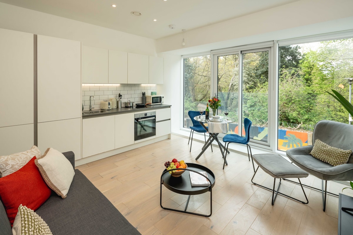 Ground floor apartment with private entrance, close to Ascot, Windsor, Legoland and great for exploring Berkshire. Short walk to Bracknell train station, shops, restaurants and Lexicon shopping centre. Bright open-plan space with king size bed, fully equipped kitchen and modern bathroom. Free parking, fast Wi-Fi, TV with streaming services, comfy workspace and self check-in. Perfect for work trips, weekend stays or visiting local attractions.